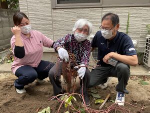 レクリエーションでは庭で菜園したものをみんなで収穫しています♪